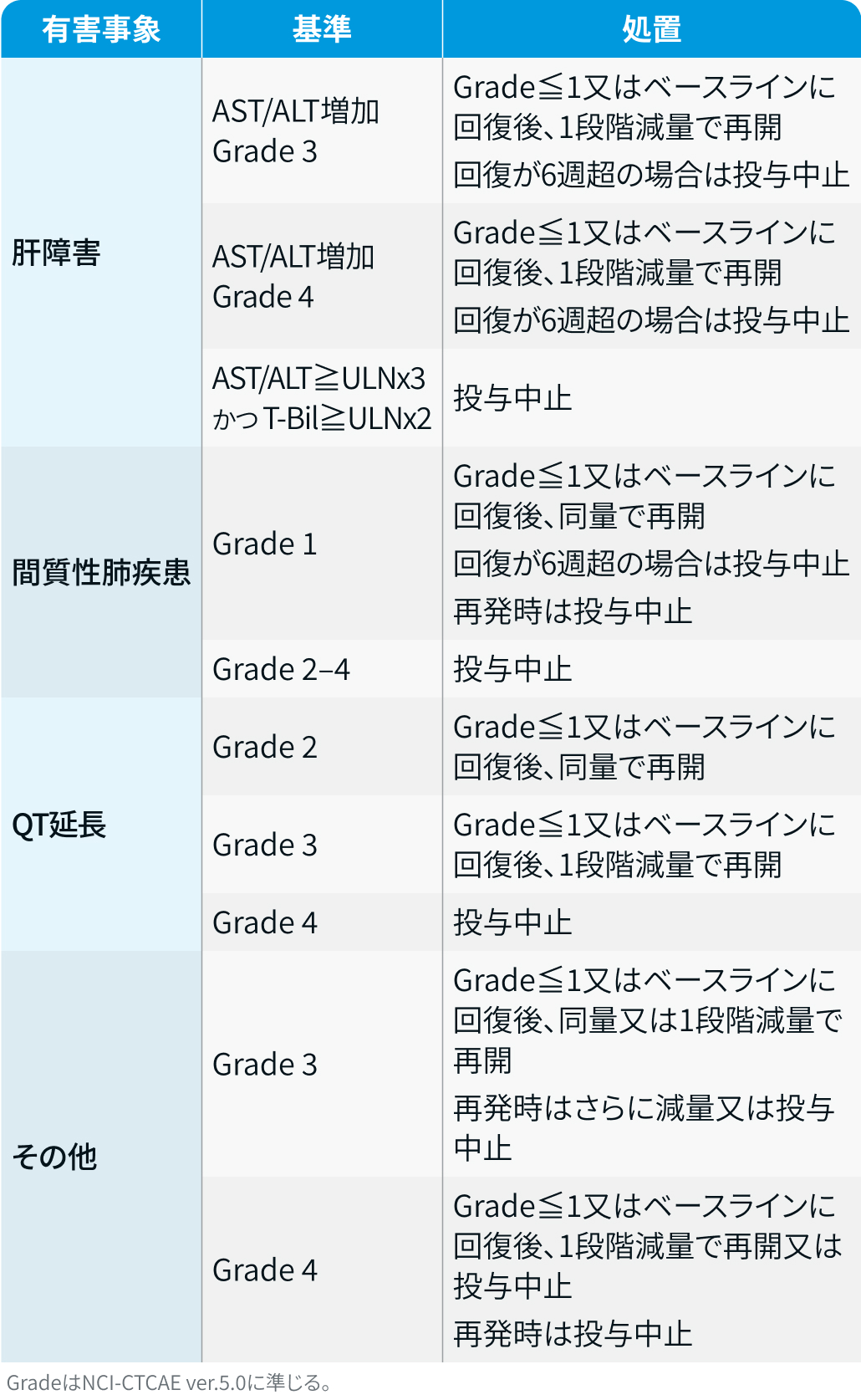 - 肝機能: T-Bil≦1.5×ULN、 AST/ALT≦3×ULN