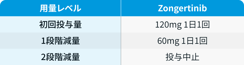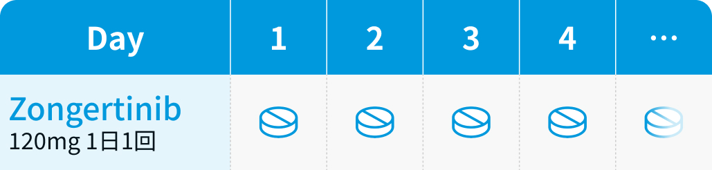 成人はゾンゲルチニブ120mgを1日1回経口投与