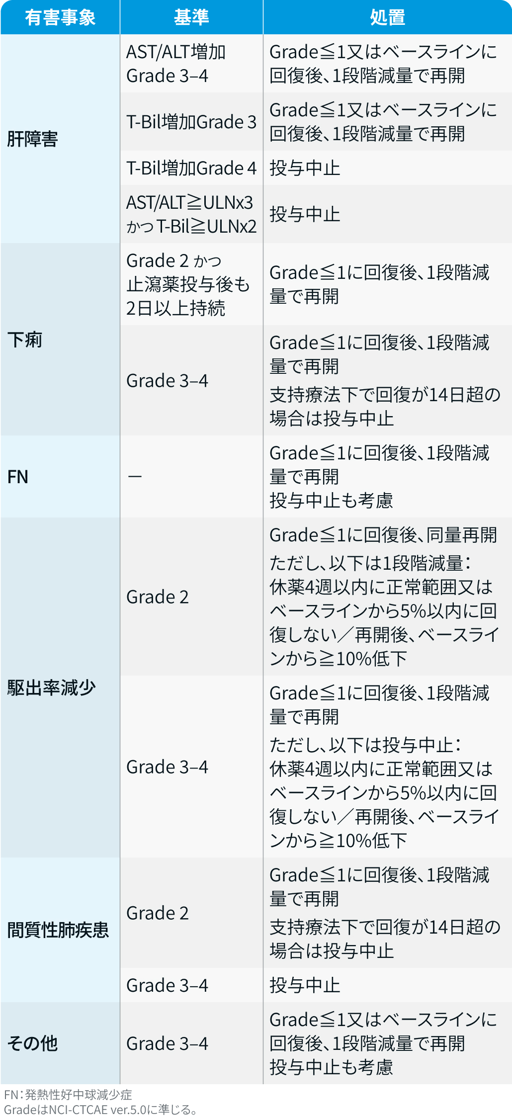 👨⚕️有害事象はGradeが低いものが多く、 忍容性は高い。 トラスツズマブ デルクステカンと本剤の最適な治療順序は明らかでない。