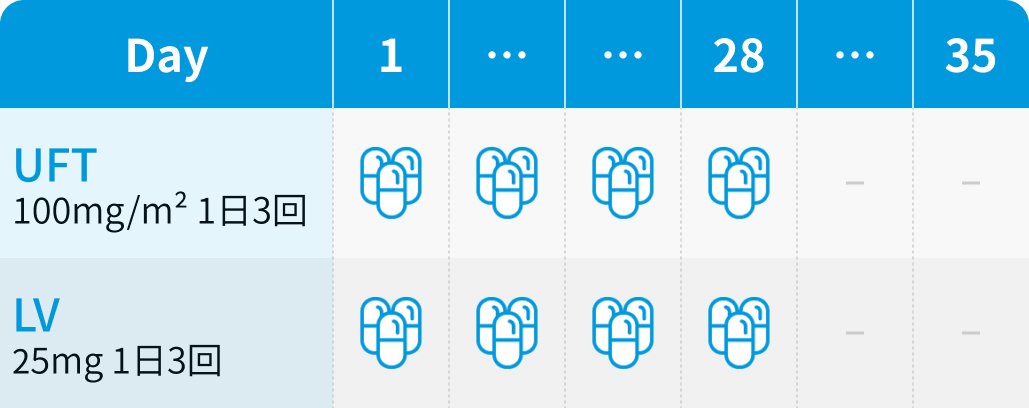 LV : 75mg/日を1日3回、 UFTと同時に内服